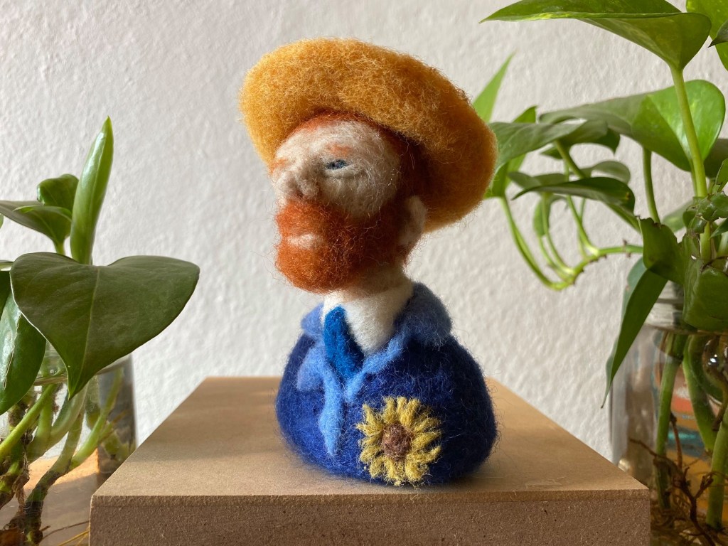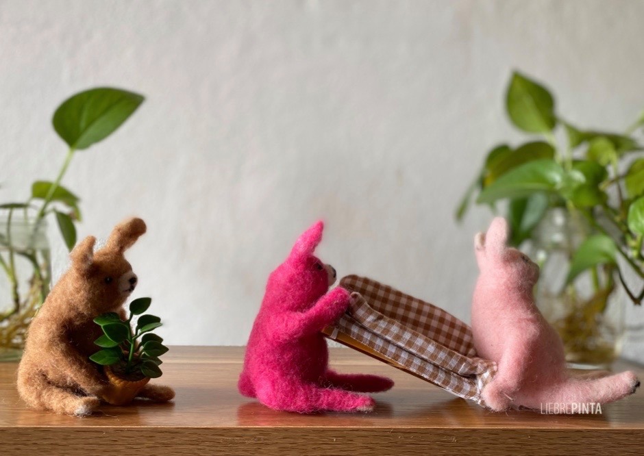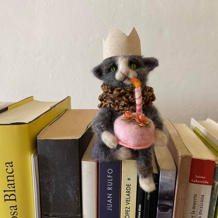 Pero antes, me tomo el atrevimiento de manifestar que al hablar de literatura, de forma incuestionable, uno enfoca en la imaginación de los recuerdos pilastras de libros, a los autores y dueños de éstos, centenares de letras componiendo sinfónicamente palabras, y, nos los culpo, también lo hago. Sin embargo, la literatura se puede percibir visualmente después de la lectura guardando el recuerdo de cierto personaje o autor en un regalo permanente de forma artística. Dicho esto, entra a escena Gabriela Luna, fundadora de la Casa de Felting Liebre Pinta, iniciativa dedicada a la creación de figuras de lana hechas a mano con un talento artístico nato.