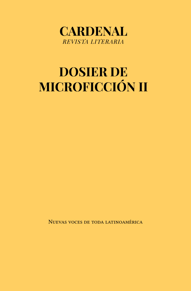 Dosier de Minificción II Dosier de Minificción II – Cardenal Revista LiterariaDescarga Compártelo: Compartir en X (Se abre en una ventana nueva) X Comparte en Facebook (Se abre en una ventana nueva) Facebook Me gusta Cargando... Relacionado